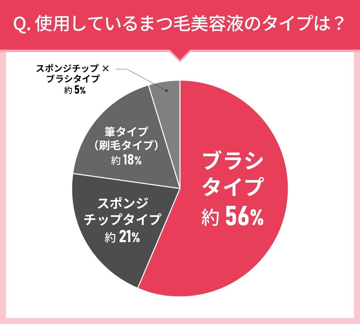 最も多かったのが「ブラシタイプ」の約56%。続いて「スポンジチップタイプ」が約21%、「筆タイプ(刷毛タイプ)」が約18%でした。